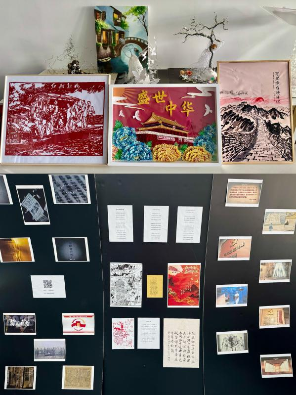 优秀作品在实验楼二楼集中展出。展厅内,作品按艺术类型与主题逻辑有序陈列,让观赏者者能够沉浸式感受艺术之美与精神之力的碰撞。参展作品既饱含学子们对艺术创作的热忱与匠心,更彰显了青年一代对红色精神的深刻思考与传承担当。