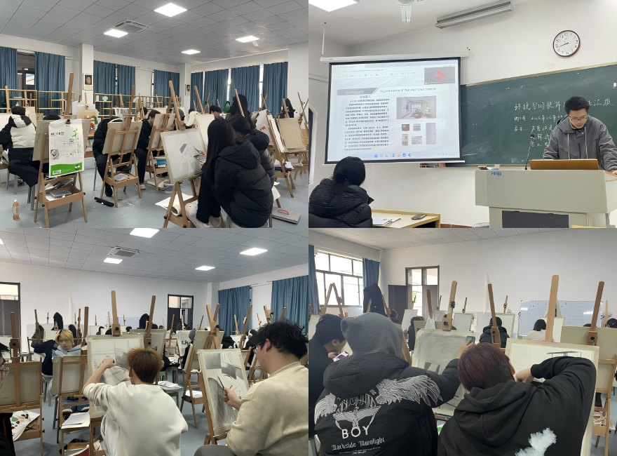本次考试覆盖22至25级艺术高本、艺术独本等多个年级,涉及商业空间设计、室内设计、设计制图、光与色彩等10余门实践课程,共计设置12个考场,惠及数百名学生。考试时间根据课程特点科学排布,既有上午8:30启动的半天制考核,也有下午13:40开始的时段性测试,考场分布于教110至教121教室及画室,确保各场次考试互不干扰。其中,24 艺术独本率先于12月15日开启环境空间装饰设计(实践)考核,22艺术高本最后以12月19日的设计制图(实践)课程收尾,整体安排紧凑有序、衔接顺畅。